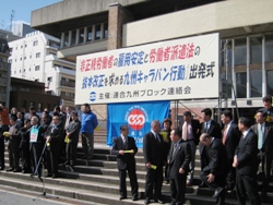 『非正規労働者の雇用安定と労働者派遣法の抜本改正を求める九州キャラバン行動出発式』が連合九州ブロック連絡会の主催で1800人の参加者のもと盛会のうちに開催され、併せて長崎市公会堂前広場から県庁までのデモ行進が行われました。