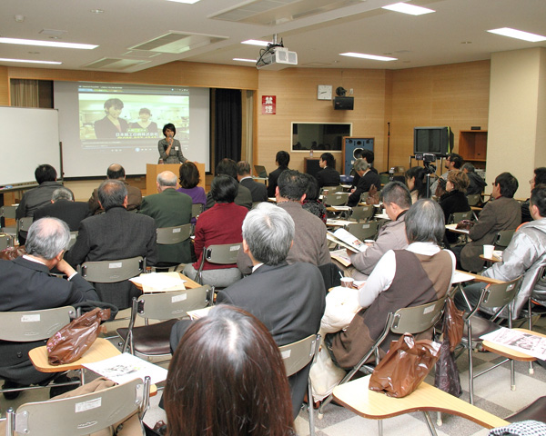 第二部は元気塾の会員で日本紙工印刷株式会社の代表取締役の窪香津子氏に、印刷の仕事の厳しさ楽しさについて、テレビ放映された自社のビデオを交えて熱っぽく語っていただきました。