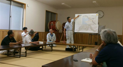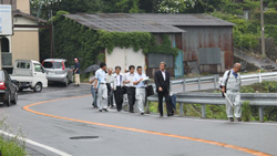 県・市の道路行政の事務方の責任者に直接現場に来てもらって(連れて来て)、地元の人達と一緒に歩き、そして協議するということはこれまでに滅多にないことだけに、それぞれの地区で多くの人に参加していただきました(以下の写真はその際の様子です)。